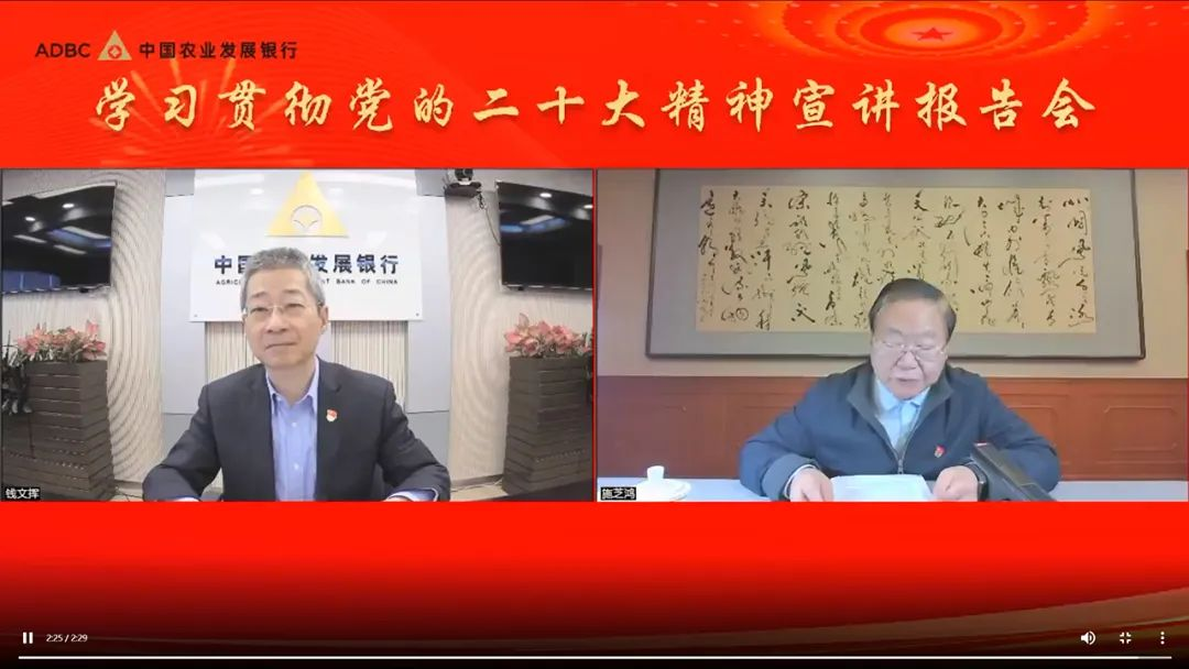 12月1日上午,農(nóng)發(fā)行以在線直播的形式舉辦學(xué)習(xí)貫徹黨的二十大精神宣講報(bào)告會(huì)暨專(zhuān)題培訓(xùn)第一課,邀請(qǐng)中央宣講團(tuán)成員、中央政策研究室原副主任施芝鴻作專(zhuān)題輔導(dǎo)。報(bào)告會(huì)由黨委書(shū)記、董事長(zhǎng)錢(qián)文揮主持,全系統(tǒng)四級(jí)行4.2萬(wàn)余名黨員干部通過(guò)線上直播方式收聽(tīng)收看。
