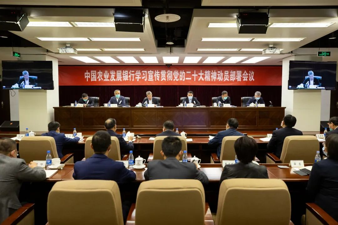 會議強調(diào),在學(xué)習(xí)宣傳貫徹黨的二十大精神過程中,要立足農(nóng)發(fā)行改革發(fā)展和黨的建設(shè)實際,堅持學(xué)思用貫通、知信行合一,緊緊圍繞新階段中心任務(wù),加快推進現(xiàn)代化建設(shè),全面提升履職成效。一是堅決扛穩(wěn)服務(wù)國家糧食安全的政治責(zé)任。全面落實藏糧于地、藏糧于技戰(zhàn)略,統(tǒng)籌支持政策性收儲和市場化購銷,大力支持糧食全產(chǎn)業(yè)鏈發(fā)展,積極支持高標準農(nóng)田建設(shè)和農(nóng)業(yè)科技發(fā)展,投貸聯(lián)動推動種業(yè)振興,助力確保中國人的飯碗牢牢端在自己手中。二是全力服務(wù)鄉(xiāng)村振興戰(zhàn)略。聚焦鄉(xiāng)村振興重點幫扶縣等重點地區(qū)和易地搬遷后續(xù)扶持等重點任務(wù)加強精準幫扶,大力支持鄉(xiāng)村特色產(chǎn)業(yè)發(fā)展、物流體系和農(nóng)業(yè)產(chǎn)業(yè)園區(qū)建設(shè),積極支持重大水利項目和農(nóng)村交通基礎(chǔ)設(shè)施建設(shè),推動以縣城為重要載體的城鎮(zhèn)化建設(shè)。三是推動區(qū)域協(xié)調(diào)發(fā)展。積極支持京津冀協(xié)同發(fā)展、長江經(jīng)濟帶發(fā)展、粵港澳大灣區(qū)建設(shè)、長三角一體化發(fā)展等,大力支持長江大保護、黃河流域生態(tài)保護和高質(zhì)量發(fā)展。四是積極服務(wù)生態(tài)文明建設(shè)。優(yōu)化完善綠色金融政策體系,突出支持清潔能源發(fā)展,積極支持生態(tài)環(huán)境、基礎(chǔ)設(shè)施綠色升級、節(jié)能環(huán)保等產(chǎn)業(yè)發(fā)展,助力“雙碳”目標如期實現(xiàn)。五是積極引導(dǎo)社會資金反哺回流“三農(nóng)”。推進支農(nóng)資金籌集優(yōu)化工程,加大存款營銷力度,積極拓展低成本資金來源,制定更加科學(xué)合理的定價策略,更好地讓利于農(nóng)、助企紓困。同時,堅持深化改革開放,強化科技創(chuàng)新,激發(fā)動力活力;統(tǒng)籌發(fā)展與安全,深入推進全面風(fēng)險管理,堅決守住不發(fā)生系統(tǒng)性風(fēng)險的底線;持之以恒推進全面從嚴治黨,常態(tài)長效推進巡視整改,為現(xiàn)代化建設(shè)提供堅強政治保障。