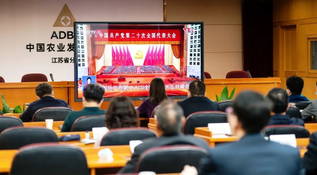 江蘇省分行黨委高度重視黨的二十大精神學習宣傳貫徹工作,結合疫情防控,專題研究并下發(fā)通知,對收聽收看組織工作做出明確部署安排。10月16日上午10時,黨的二十大在京勝利開幕,省行黨委班子各處室負責人在省行機關集中收聽收看,各市縣行領導班子及部分黨員在當?shù)匦屑惺湛?,其他員工也通過電視、網(wǎng)絡等方式自覺收聽收看。大家一致表示,要全面貫徹習近平新時代中國特色社會主義思想,凝心聚力、攻堅克難,踔厲奮發(fā)、勇毅前行,以昂揚的斗志和充沛的干勁投入服務“三農(nóng)”的事業(yè)中。