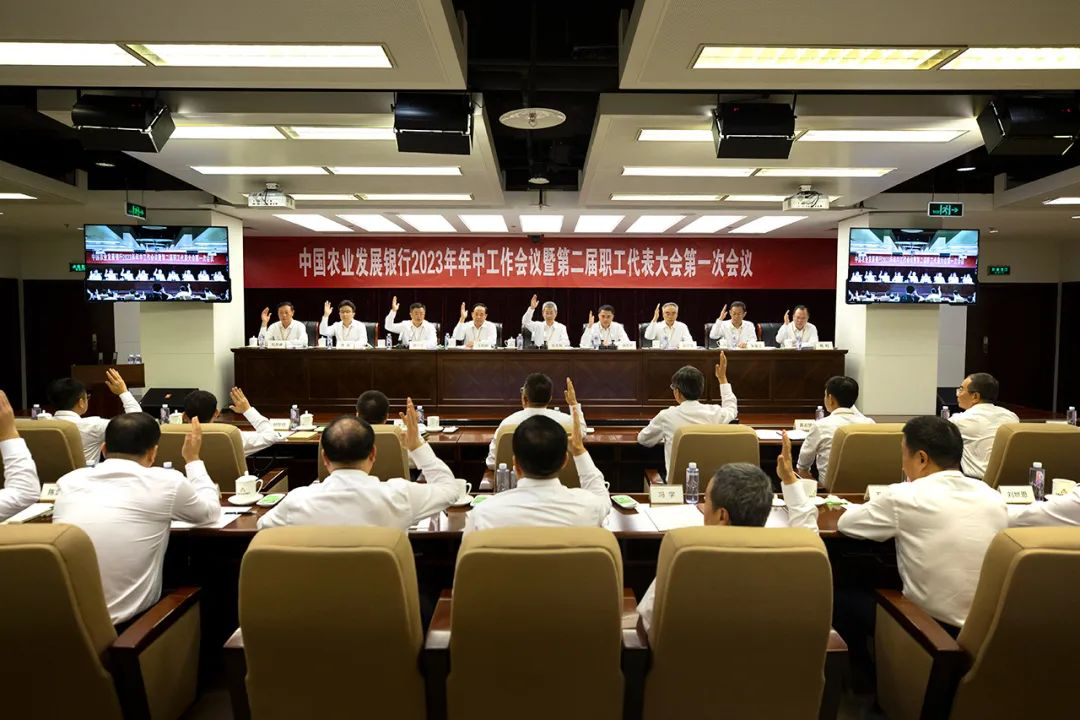 2023年7月13日,中國(guó)農(nóng)業(yè)發(fā)展銀行召開第二屆職工代表大會(huì)第一次會(huì)議。會(huì)議以“現(xiàn)場(chǎng)+視頻”形式召開,總行機(jī)關(guān)設(shè)主會(huì)場(chǎng),各省級(jí)分行設(shè)分會(huì)場(chǎng)。中國(guó)農(nóng)業(yè)發(fā)展銀行黨委書記、董事長(zhǎng)錢文揮出席并講話,黨委副書記、行長(zhǎng)湛東升作行務(wù)工作報(bào)告,黨委委員、副行長(zhǎng)、工會(huì)委員會(huì)主席徐一丁作企業(yè)民主管理工作報(bào)告??傂蓄I(lǐng)導(dǎo)班子成員及高管、總行機(jī)關(guān)、各分支機(jī)構(gòu)選出的第二屆職工代表共237人分別在主會(huì)場(chǎng)和分會(huì)場(chǎng)參加了大會(huì),總行各部室負(fù)責(zé)人列席了大會(huì)。