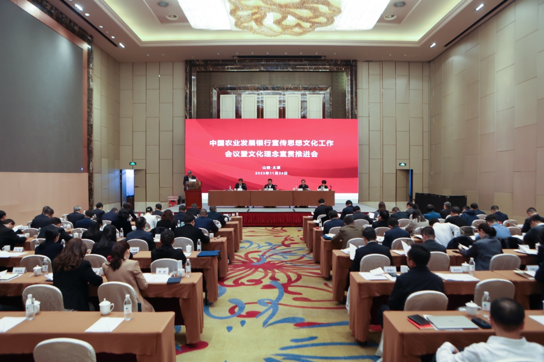 11月24日,農(nóng)發(fā)行在山西太原召開全行宣傳思想文化工作會議暨文化理念宣貫推進會,傳達學習習近平總書記關于宣傳思想文化工作的重要指示、全國宣傳思想文化工作會議和中央金融工作會議精神,部署貫徹落實措施??傂悬h委委員、副行長徐一丁出席會議并講話,黨委宣傳部主要負責人主持會議,各省級分行分管宣傳工作的行領導、總行有關部室負責人、控股子公司有關負責人和省級分行黨委宣傳部部長參加會議。