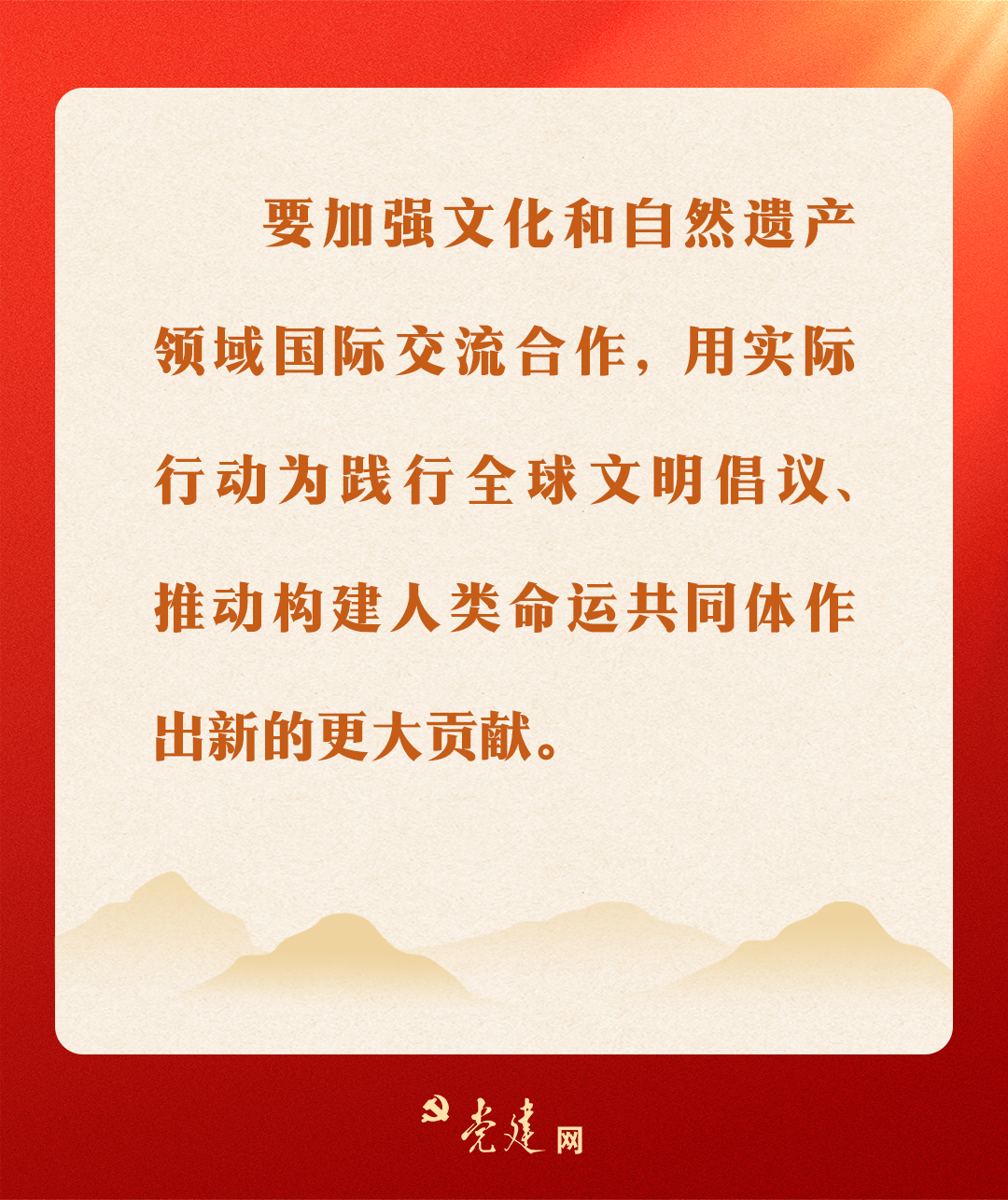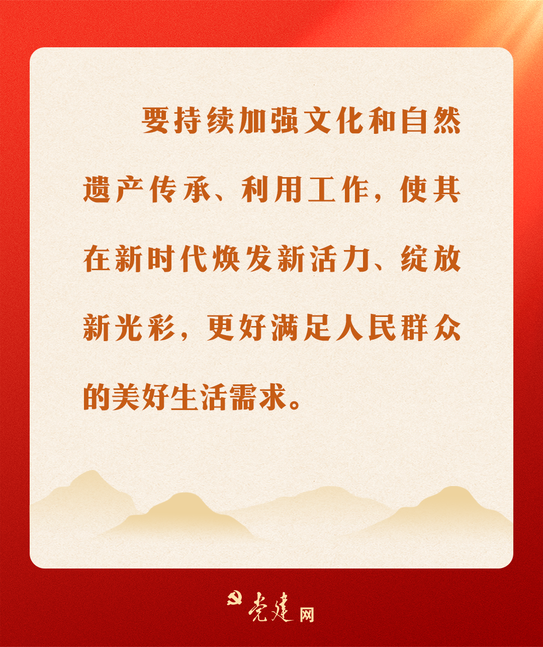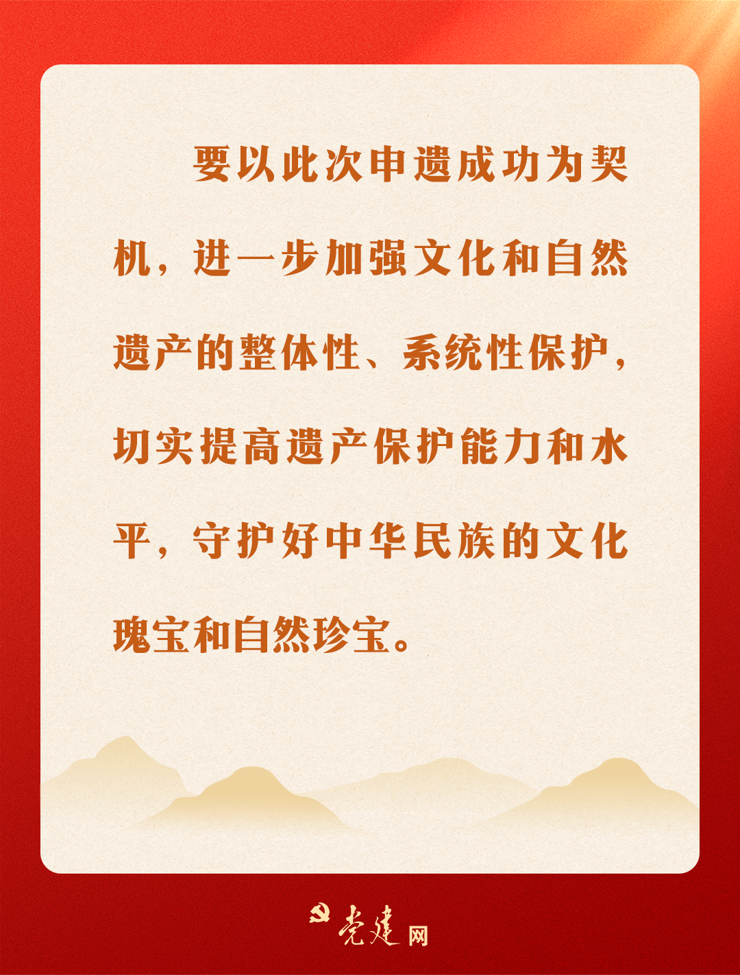 近日,習(xí)近平總書記對加強(qiáng)文化和自然遺產(chǎn)保護(hù)傳承利用工作作出重要指示指出,“北京中軸線——中國理想都城秩序的杰作”和“巴丹吉林沙漠-沙山湖泊群”、“中國黃(渤)海候鳥棲息地(第二期)”成功列入《世界遺產(chǎn)名錄》,對于建設(shè)物質(zhì)文明和精神文明相協(xié)調(diào)、人與自然和諧共生的中國式現(xiàn)代化具有積極意義,為世界文明百花園增添了絢麗的色彩。關(guān)于守護(hù)好中華民族的文化瑰寶和自然珍寶,讓文化和自然遺產(chǎn)在新時(shí)代煥發(fā)新活力綻放新光彩,總書記在重要指示中強(qiáng)調(diào)了“三個(gè)要”,快來一圖學(xué)習(xí)!