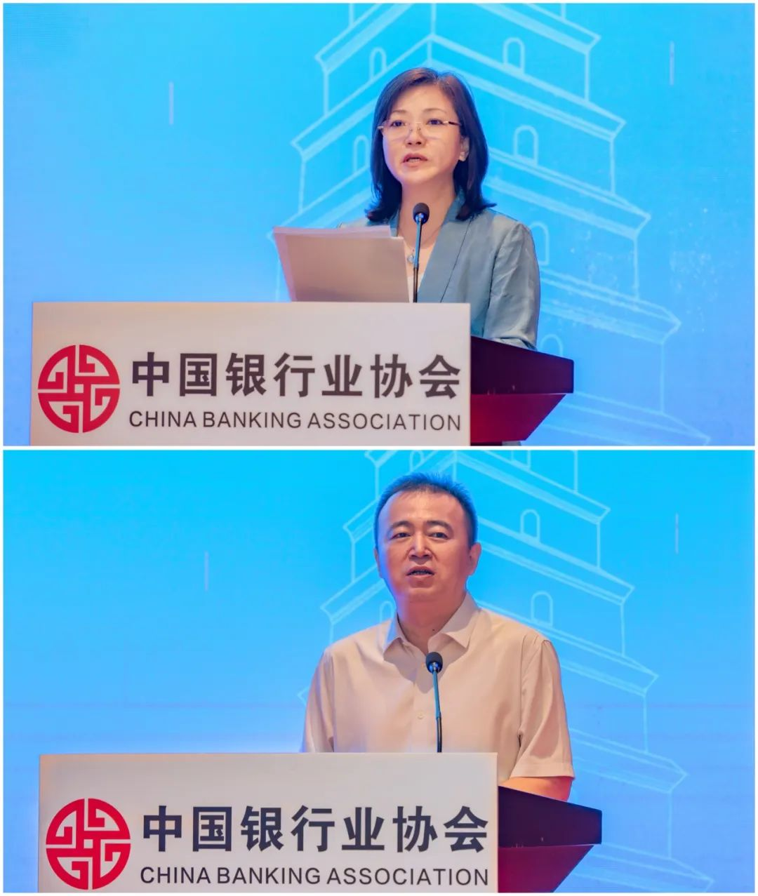 上:中國銀行業(yè)協(xié)會黨委委員、副秘書長張亮致辭;下:中國農(nóng)業(yè)發(fā)展銀行陜西省分行黨委書記、行長馬延峰致辭