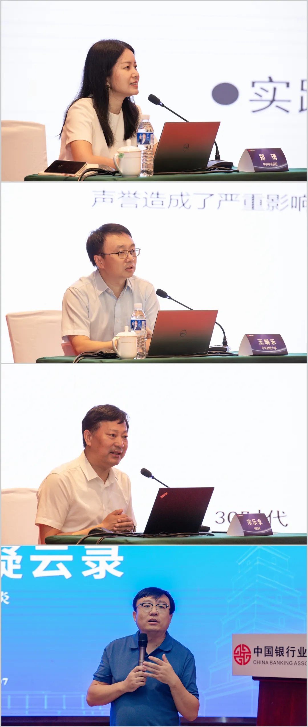 從上至下依次為:中共中央黨校(國家行政學(xué)院)教授鄭琦講授 “堅持黨中央對金融工作的集中統(tǒng)一領(lǐng)導(dǎo)”專題黨課;中央財經(jīng)大學(xué)金融品牌研究所所長王曉樂以“商業(yè)銀行聲譽風(fēng)險全流程處置實戰(zhàn)”為題授課;光明網(wǎng)副總經(jīng)理、副研究員宋樂永以“技術(shù)賦能融合傳播”為題授課;中科慧智聯(lián)席創(chuàng)始人方子炎以“劇本殺”形式主持開展實戰(zhàn)演練《京州地產(chǎn)疑云錄》