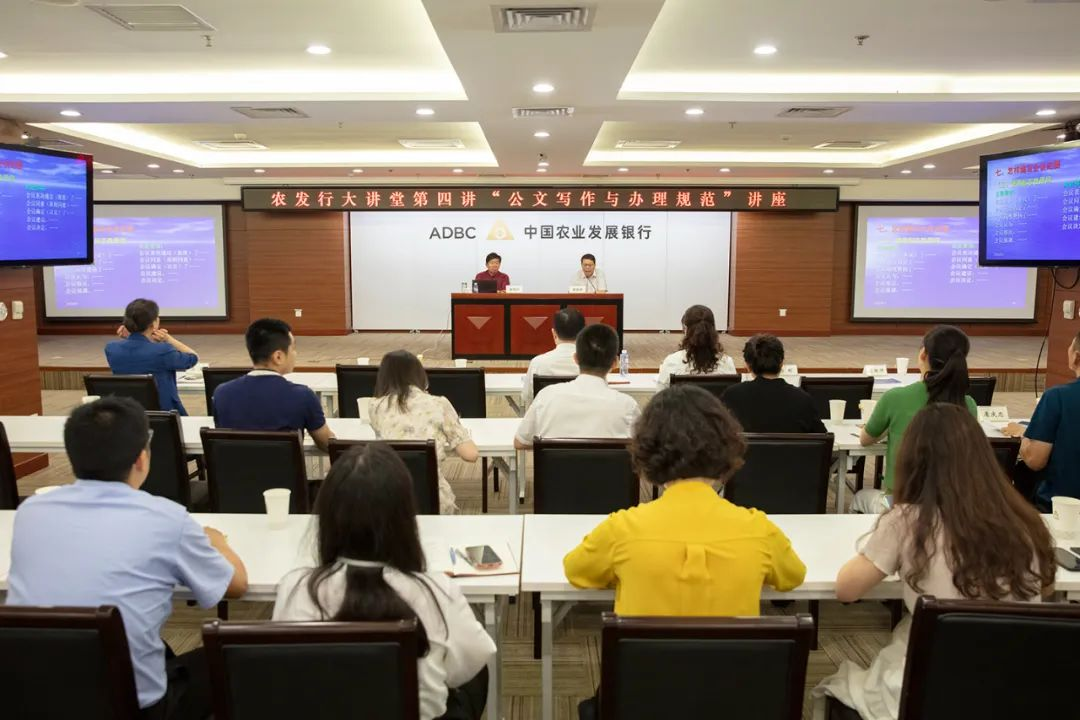 8月1日,農(nóng)發(fā)行舉辦2024年第四期“農(nóng)發(fā)行大講堂”,邀請(qǐng)北京電子科技學(xué)院教授姬瑞環(huán)作“公文寫作與辦理規(guī)范”專題講座。講座以線上線下相結(jié)合的方式進(jìn)行,駐行紀(jì)檢監(jiān)察組、總行各部室相關(guān)人員在主會(huì)場(chǎng)參加,各分支機(jī)構(gòu)相關(guān)人員在分會(huì)場(chǎng)以視頻形式參加。