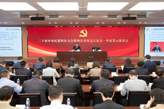 為進一步深入學(xué)習(xí)貫徹二十屆中央紀委四次全會精神,常態(tài)化開展警示教育,3月6日,總行機關(guān)召開二十屆中央紀委四次全會精神宣講暨一季度警示教育會,駐行紀檢監(jiān)察組組長、總行黨委委員熊驚峰以《深入學(xué)習(xí)貫徹二十屆中央紀委四次全會精神 在總行機關(guān)以更嚴的標準管黨治黨》為題作全會精神宣講,開展警示教育,并就抓好貫徹落實提出要求??傂袡C關(guān)紀委委員、各基層黨組織紀檢委員,駐行紀檢監(jiān)察組及黨風(fēng)廉政建設(shè)工作部、機關(guān)黨委全體人員等參加會議。