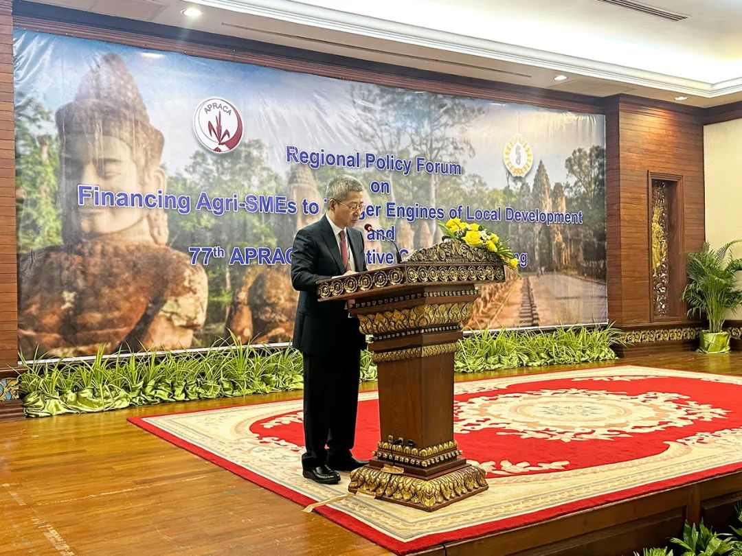 8月8日,由亞太農(nóng)村及農(nóng)業(yè)信貸協(xié)會(huì)(簡(jiǎn)稱(chēng)亞太農(nóng)協(xié))主辦、柬埔寨國(guó)家銀行承辦的亞太農(nóng)協(xié)第77屆執(zhí)委會(huì)會(huì)議暨“金融支持中小農(nóng)企,推動(dòng)當(dāng)?shù)匕l(fā)展”地區(qū)政策論壇在柬埔寨暹粒舉行。中國(guó)農(nóng)業(yè)發(fā)展銀行董事長(zhǎng)錢(qián)文揮作為亞太農(nóng)協(xié)主席出席地區(qū)政策論壇并致歡迎辭,主持執(zhí)委會(huì)會(huì)議并致開(kāi)幕辭和閉幕辭。協(xié)會(huì)各成員機(jī)構(gòu)代表參會(huì)。