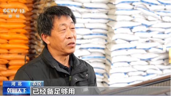農(nóng)民:今年在這買了12噸化肥,已經(jīng)備足夠用,馬上小麥返青澆水,咱們開始使用了。