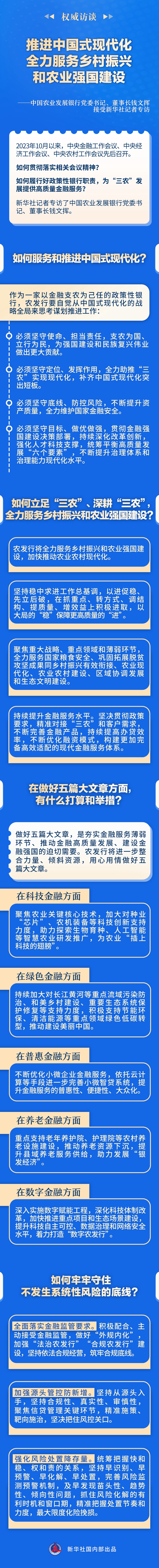 問:中央金融工作會議指出,金融要為經(jīng)濟社會發(fā)展提供高質(zhì)量服務。請問農(nóng)發(fā)行將如何立足“三農(nóng)”、深耕“三農(nóng)”,全力服務鄉(xiāng)村振興和農(nóng)業(yè)強國建設?