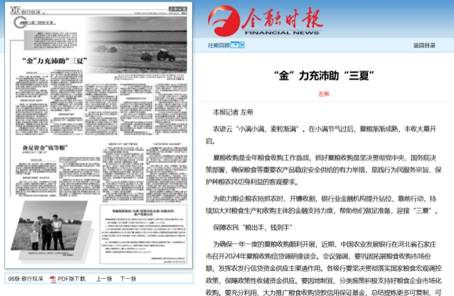 近年來,農(nóng)發(fā)行聚焦長三角戰(zhàn)略重點(diǎn),全力服務(wù)“六大領(lǐng)域”,強(qiáng)化“四個(gè)銀行”品牌建設(shè),扎實(shí)做好金融五篇大文章,創(chuàng)新開展浙江“強(qiáng)村共富貸”、安徽“村落徽州”“VEP綠色貸”等一批可借鑒可推廣的經(jīng)驗(yàn)?zāi)J?,推?dòng)江蘇太湖藍(lán)藻治理、浙江莫干山國際鄉(xiāng)村未來社區(qū)、安徽全椒國家儲(chǔ)備林建設(shè)等一批標(biāo)志性工程項(xiàng)目落地,為服務(wù)國家戰(zhàn)略、推進(jìn)業(yè)務(wù)創(chuàng)新轉(zhuǎn)型發(fā)展樹立了示范和標(biāo)桿。在服務(wù)國家糧食安全和重要農(nóng)產(chǎn)品保供方面,農(nóng)發(fā)行支持江蘇、安徽主產(chǎn)區(qū)“保收儲(chǔ)”,服務(wù)上海、浙江主銷區(qū)“保供應(yīng)”,實(shí)現(xiàn)產(chǎn)銷區(qū)“兩個(gè)輪子一起轉(zhuǎn)”。踐行大食物觀,積極支持現(xiàn)代都市農(nóng)業(yè)發(fā)展,打造長三角地區(qū)特色農(nóng)產(chǎn)品品牌?!笆奈濉币詠恚r(nóng)發(fā)行在長三角地區(qū)累放糧棉油各類貸款3536億元,截至2024年4月末,貸款余額1882億元。
