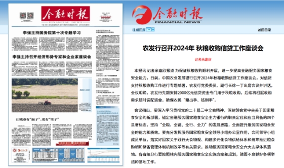 會(huì)議指出,要深入學(xué)習(xí)貫徹黨的二十屆三中全會(huì)精神,深刻領(lǐng)會(huì)黨中央關(guān)于國(guó)家糧食安全的新部署,錨定金融服務(wù)國(guó)家糧食安全主力銀行的職責(zé)定位和應(yīng)當(dāng)具備的四個(gè)顯著標(biāo)志,堅(jiān)持“全糧、全鏈、全行、全力”的發(fā)展思路,全面提升服務(wù)國(guó)家糧食安全的能力和質(zhì)效。要充分發(fā)揮服務(wù)國(guó)家糧食安全領(lǐng)導(dǎo)小組辦公室作用,會(huì)同領(lǐng)導(dǎo)小組成員單位,落實(shí)好國(guó)家關(guān)于踐行大食物觀、構(gòu)建多元化食物供給體系和統(tǒng)籌推進(jìn)糧食購(gòu)銷和儲(chǔ)備管理體制機(jī)制改革等有關(guān)要求,推動(dòng)服務(wù)國(guó)家糧食安全六大支撐體系落地。各省級(jí)分行要按照轄內(nèi)服務(wù)國(guó)家糧食安全實(shí)施方案和規(guī)劃,馳而不息抓好各項(xiàng)舉措的落地工作。