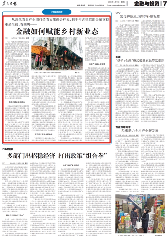 在全面推進鄉(xiāng)村振興的征程中,金融力量正成為激活鄉(xiāng)村資源、培育新業(yè)態(tài)、推動產(chǎn)業(yè)融合發(fā)展的關(guān)鍵引擎。從農(nóng)村宅基地改革盤活土地資源,到現(xiàn)代農(nóng)業(yè)產(chǎn)業(yè)園打造農(nóng)文旅融合樣板,再到千年古鎮(zhèn)借助金融支持重煥生機,一系列生動實踐展現(xiàn)了金融助力鄉(xiāng)村新業(yè)態(tài)發(fā)展的強大效能,為建設(shè)宜居宜業(yè)和美鄉(xiāng)村注入澎湃動力。記者日前走進四川多地,探尋金融助力鄉(xiāng)村新業(yè)態(tài)發(fā)展的秘密。