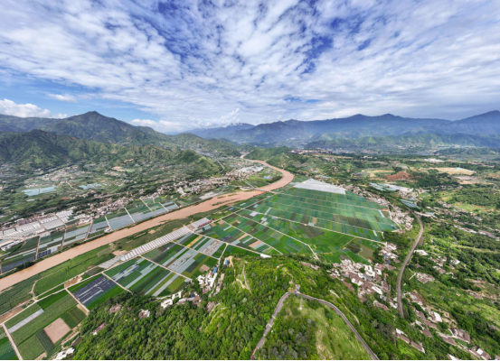 2025年7月9日拍攝的四川省攀枝花市米易縣撒蓮鎮(zhèn)安全村高標(biāo)準(zhǔn)農(nóng)田(無(wú)人機(jī)照片)。新華社記者 江宏景 攝