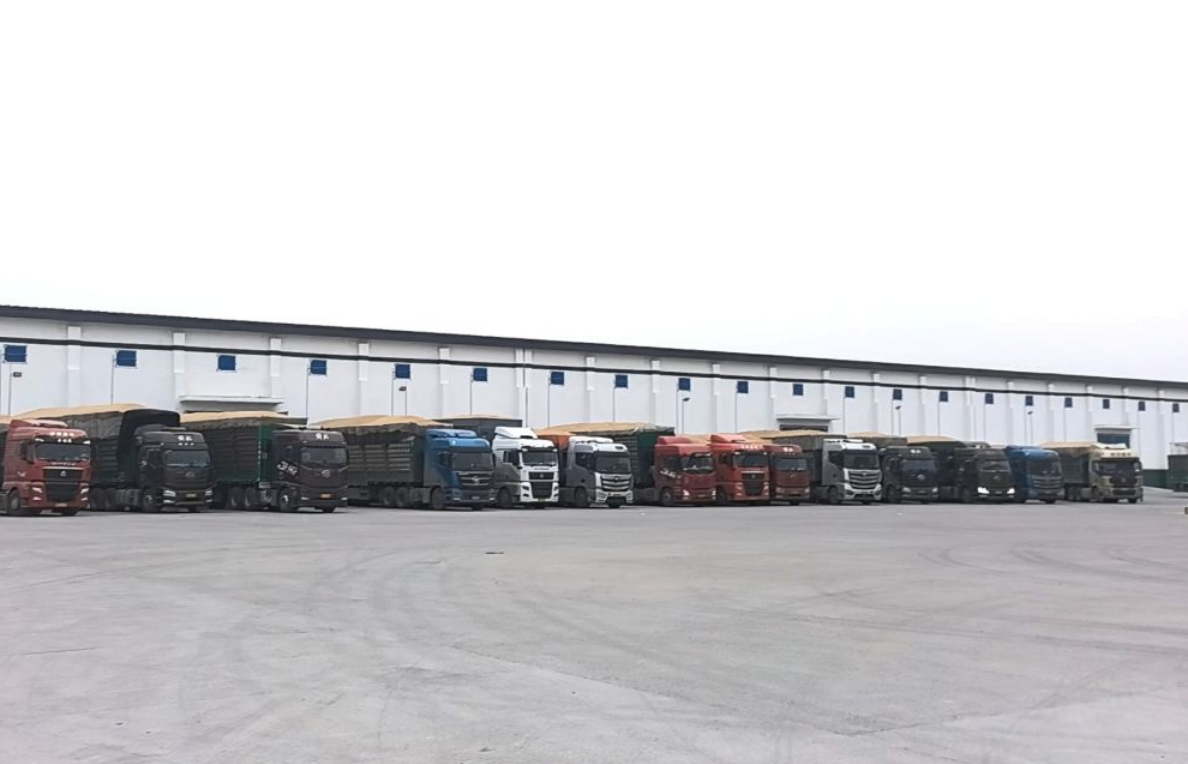 在位于黑龍江佳木斯的中央儲(chǔ)備糧湯原直屬庫(kù)有限公司庫(kù)區(qū),排隊(duì)等待稱重的運(yùn)糧車(chē)。新華社記者劉羽佳 攝