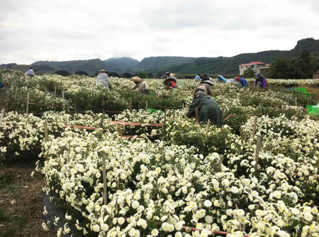 ▲貴定縣500畝壩區(qū)產(chǎn)業(yè)結(jié)構(gòu)調(diào)整項目菊花種植現(xiàn)場