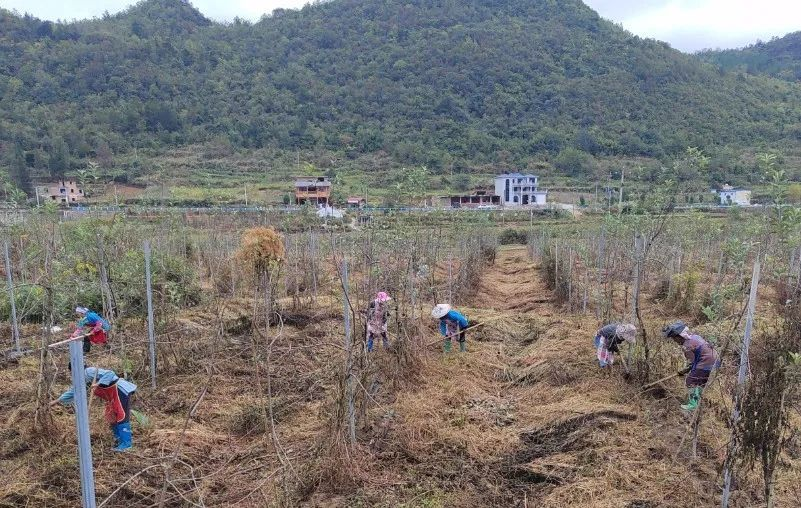三原公司承建的長順縣農(nóng)村產(chǎn)業(yè)融合發(fā)展示范園內(nèi),農(nóng)戶們正在蘋果園忙著修剪、澆水、施肥、覆膜、噴藥,除草機(jī)的轟鳴聲相互交織,一派繁忙景象。
