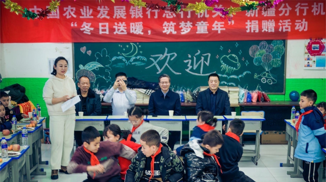 捐贈儀式上,農(nóng)發(fā)行一行人員與孩子們共同開展文藝聯(lián)歡及游戲互動,總行機(jī)關(guān)工會人員向孩子們轉(zhuǎn)達(dá)了機(jī)關(guān)職工的真情問候和關(guān)愛,希望這些跨越數(shù)千公里而來的編織作品能為他們帶來冬日的溫暖。