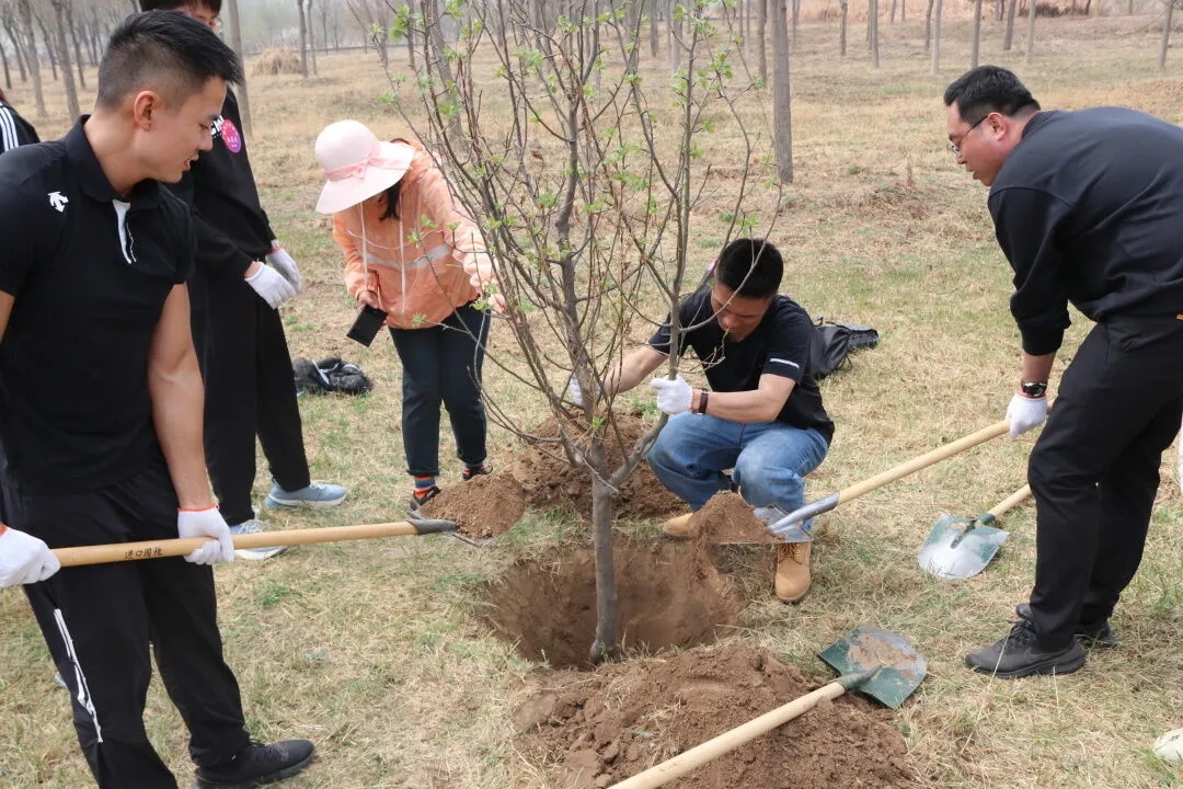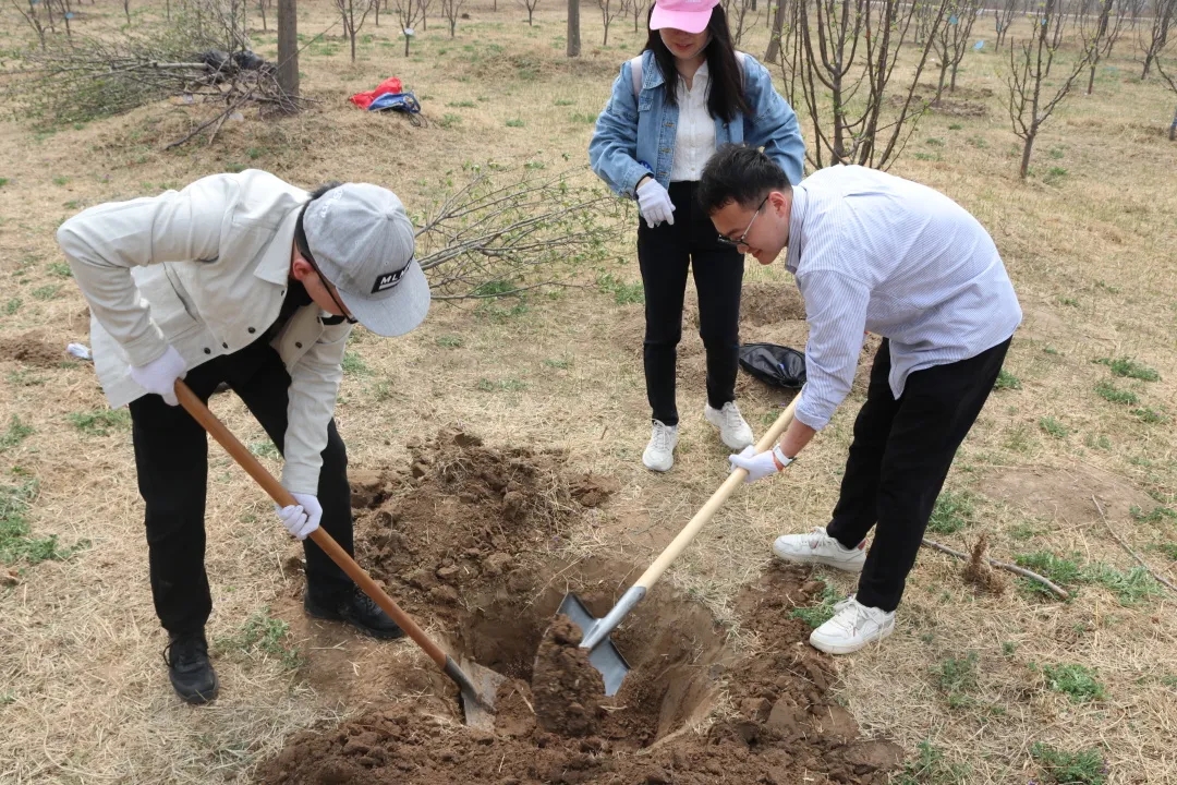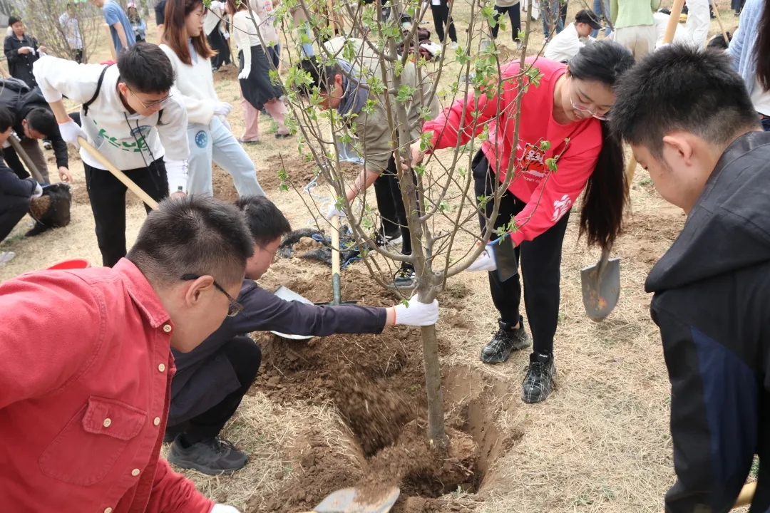 活動現(xiàn)場,青年們熱情高漲,干勁十足,紛紛拿起鋤頭、鐵鍬等工具,分工合作、互相配合,積極投入到植樹活動中,從挖坑、放苗到培土、澆水,每一道工序都一絲不茍,共同為這片土地播撒綠色的希望。經(jīng)過一番辛勤勞動,青年們合力種下24棵海棠樹苗,為大地增添了一抹新綠。大家不僅體驗了植樹的樂趣,更在汗水中收獲了友誼的果實。