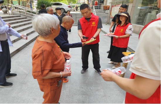 “小邱,你又到社區(qū)來搞宣傳啦?!闭f這句話的是安康市居尚花園社區(qū)黨委的劉主任,他口中的“小邱”,就是農(nóng)發(fā)行安康市分行幫扶社區(qū)聯(lián)絡(luò)專干邱盛明,73年出生的他年齡不算小,喊他“小邱”,一方面是因?yàn)樗鈽s入伍,干起事來精神頭倍兒足,另一方面是因?yàn)樗?jīng)常入戶,被社區(qū)的老人叫習(xí)慣了。