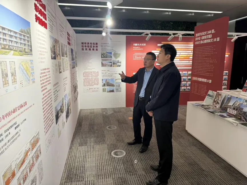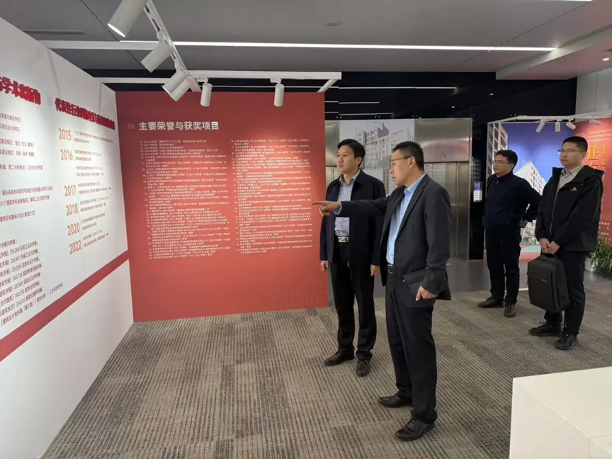 會(huì)談前,羅文斌陪同伊廷華副校長(zhǎng)一行參觀了標(biāo)準(zhǔn)院企業(yè)展覽,詳細(xì)介紹了標(biāo)準(zhǔn)院的發(fā)展歷程、核心業(yè)務(wù)板塊以及綜合技術(shù)服務(wù)能力。伊廷華副校長(zhǎng)對(duì)標(biāo)準(zhǔn)院在建筑領(lǐng)域取得的成就表示高度贊賞。